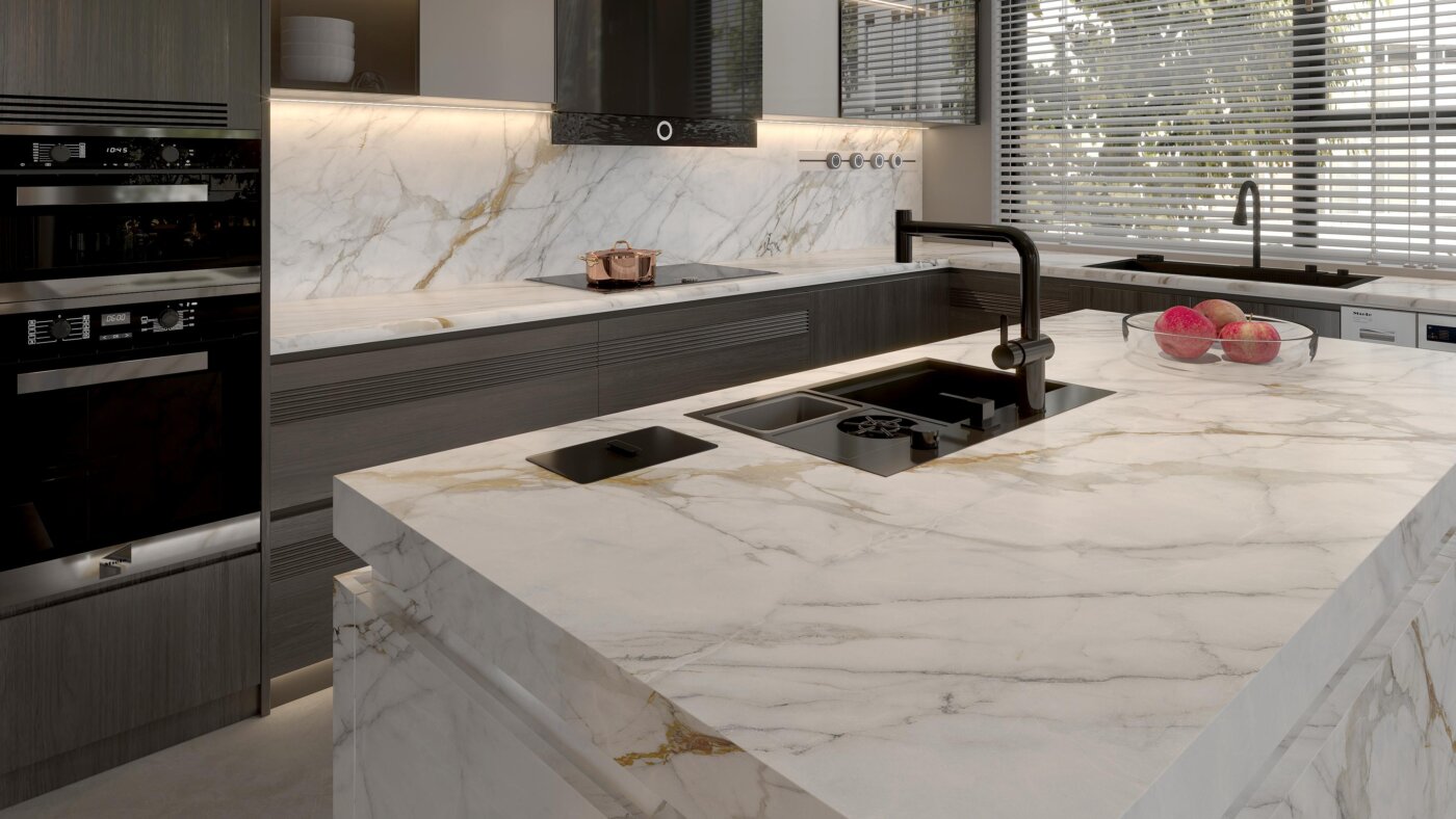 Sintered stone is a synthetic surfacing material made entirely of minerals and formed by heat. Unlike engineered stone countertops or quartz countertops, which use resins as binders, sintered stone contains no binders. The materials are heated to such a high temperature and pressed that the minerals fuse, essentially becoming their own binder.